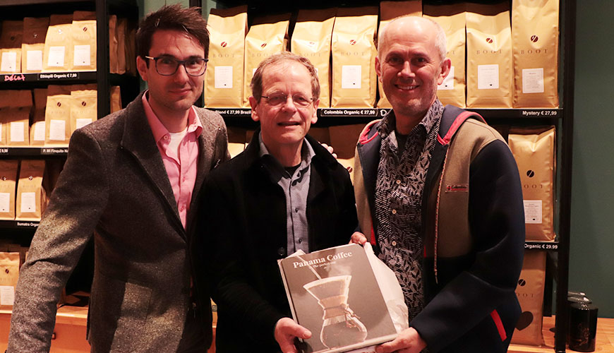 Begin dit jaar stond Ricardo bij ons in de koffiewinkel in Baarn en presenteren wij samen zij aan zij trots de laatste oogst van “zijn” Panamaria, nog steeds met dezelfde fantastische smaaktonen als die eerste koffie van Maria Ruiz, zij was en blijft gewoon de oermoeder van deze geweldige koffie.