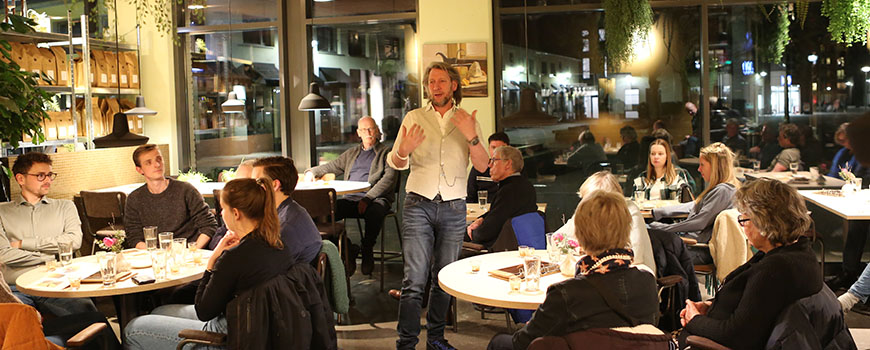 In een huiskamersetting deelde DirkJan Stip (Coffee Corazon) veel mooie en interessante koffiekennis. Van landen tot branden, van planten tot boeren. Van vroeger en van nu. Dirk Jan's charismatisch voorkomen en natuurlijke vertelwijze zorgen dat je van begin tot eind geboeid blijft luisteren en echt iets opsteekt.